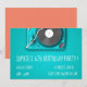 Una invitación de cumpleaños temática de música funky, genial, retro e hip, adecuada para una chica adolescente con un gráfico de un tocadiscos de vinilo retro azul contra un fondo azul. El texto se puede personalizar completamente para incluir tus datos personales. Colorido y alegre, para una fiesta de cumpleaños adolescente con temática musical.