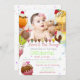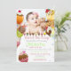 Un bonito y colorido diseño de ilustracion helado con cucharas brillantes de helados en conos de azúcar esparcidas alrededor del borde de la invitación y el confeti arcoiris formando un borde alrededor de tu hermosa foto de los Niños. Hay bonitas plantillas de script para tu redacción personalizada y la parte posterior tiene espacio para detalles adicionales si es necesario.