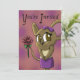 Un ratón joven hace una linda pose mientras sostiene a un rosa con su cola. Una linda invitación para que chicas especiales tengan un día para celebrar su nacimiento.
