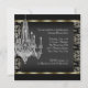Invitaciones de fiesta con elegante araña de cristal sobre un hermoso fondo de damasco dorado y negro. Esta elegante invitación de fiesta con araña de cristal se personaliza fácilmente para su evento.