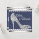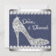 Elegantes invitaciones de cumpleaños de zapatos de tacón alto de diamantes brillantes y mezclilla azul. Esta adorable invitación de cumpleaños de mezclilla y diamantes es perfecta para una fiesta de cumpleaños de dulces dieciséis, Quinceañera, cumpleaños de cualquier número para niñas y mujeres, o fiesta o evento con tema de mezclilla y diamantes. Agregue sus detalles en la parte delantera y/o trasera al agregar los detalles del evento, estilo de fuente, tamaño y color de la fuente, y redacción.
