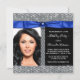 Invitaciones de fiesta de cumpleaños con diamantes azules reales con elegante lazo y cinta azul real en un hermoso fondo de glamour de diamantes con espacio para tu foto. Esta invitación de cumpleaños de diamantes azules reales se personaliza fácilmente para tu evento simplemente agregando tus detalles y foto.