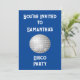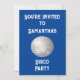 Discoteca Fiesta Retro Invitación divertida de cumpleaños - Cualquier edad. Por Ella O Él. Se Puede Personalizar. Azul y Plata con texto vintage. Divertido tema de la discoteca Purpurina Bokeh. Ideal para cumpleaños, aniversarios y graduaciones.