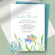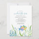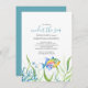 Esta invitación a la fiesta de cumpleaños de los mellizos tropicales incluye las palabras "Under the Sea" (Bajo el mar), ambientadas en una elegante tipografía de escritura con letras a mano en azul turquesa con detalles del evento en una fuente serif clásica de carbón gris sobre un fondo blanco fresco con un borde inferior de mi mano pintado de una bonita acuarela tropical de color agua, pez estrella, coral del mar y algas. La tarjeta de invitación se revierte a un color azul gratuito. Una idea única y bonita para el tema de cumpleaños 1 de Under The Sea o beach twins. Para ver todo este tema de la fiesta de cumpleaños de los peces tropicales de Victoria Grigaliunas visita www.zazzle.com/dotellabelle