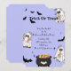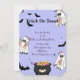 invitación de fiesta de cumpleaños de halloween con fantasmas, murciélagos, calabazas, trucos o víveres