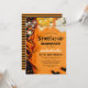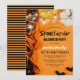 Invitaciones de fiesta de cumpleaños de Halloween para niños con fondo naranja de otoño, decoración de mesa de fiesta, calabazas, murciélagos, luces de cuerda y una plantilla de fiesta de Halloween personalizada espeluznante que es fácil de personalizar.