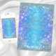 Invitación de cumpleaños de invierno mágico con hermosos copos de nieve azul teal y tipografía plateada elegante sobre un fondo de copos de nieve bokeh congelado morado y azul teal. Esta elegante invitación de cumpleaños de invierno mágico con copos de nieve congelados se personaliza fácilmente para su evento simplemente agregando sus detalles en el estilo de fuente y color y redacción de su elección. Este es un diseño impreso sin purpurina real, joyas, etc.