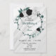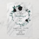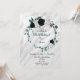 flores negras y azules verde azuladas y románticas y hojas sobre fondo de mármol gris invitación de cumpleaños de corona botánica Los detalles del purpurina son simulados