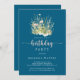 Esta verde invitación de cumpleaños de la marina de flores silvestres es perfecta para un evento rústico. El diseño se compone de flores acuáticas rosas, rubias, amarillas y blancas, dispuestas en elegantes ramos.