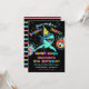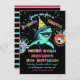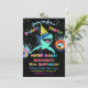 Colorida piscina de neón Invitaciones a fiestas de cumpleaños de tiburones. Presenta fuentes neón, tiburón feliz con gorra fiesta y salpicaduras de agua en un fondo negro. Barras de color neón en la parte trasera. ¡Genial para un chica o un niño! Las palabras "Bash de agua y cumpleaños" no se pueden cambiar pero se pueden borrar. Para realizar más cambios, vaya a Personalizar esta plantilla. En la parte inferior verás "¿Quieres personalizar este diseño aún más? Haga clic en la herramienta EDIT using Design. A partir de ahí puede cambiar algunas fuentes y algunos colores, mover cosas o borrar lo que necesita.