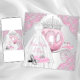 Invitación de cumpleaños de Cenicienta con vestido hermoso, zapatos de tacón alto y tiara con un carruaje de princesa sobre un fondo de remolino rosa y plateado. Esta hermosa invitación de cumpleaños de princesa Cenicienta para niñas de cualquier edad es fácilmente personalizable para su evento simplemente agregando sus detalles en el estilo de fuente y color, y redacción de su elección. Puede mover los zapatos y la almohada, o eliminarlos si lo prefiere. Este es un diseño impreso sin purpurina real, diamantes, encaje, etc.