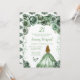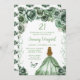 Esta elegante y glamorosa invitación para el cumpleaños incluye una hermosa princesa con el pelo rubio y piel clara en un vestido verde sabio. El texto combina el guión manuscrito y las fuentes sans serif modernas para un aspecto elegante y sofisticado. Los arreglos florales, la mariposa y el confetti crean la combinación perfecta entre rústico y moda. Gráficos de www.etsy.com/uk/shop/SunflowerDayLove