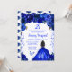 Esta elegante y glamorosa invitación para el cumpleaños cuenta con una bella princesa con el pelo castaño y la piel oscura en un vestido de bolas azul real. El texto combina el guión manuscrito y las fuentes sans serif modernas para un aspecto elegante y sofisticado. Los arreglos florales, la mariposa y el confetti crean la combinación perfecta entre rústico y moda. Gráficos de www.etsy.com/uk/shop/SunflowerDayLove