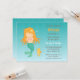 ¡Sube la amabilidad de la fiesta de cumpleaños de las chicas con una encantadora y colorida invitación a la fiesta de cumpleaños bajo el agua! Esta invitación viene con una linda sirenita con el pelo naranja con una estrella amarilla como accesorio para el pelo y conchas de almejas como bikini. Un pequeño caballito de mar amarillo está nadando a su lado. Un patrón ondulado para el fondo. Personalice con facilidad los detalles de su fiesta sobre el espacio proporcionado. Ideal para chicas de cumpleaños que aman bajo el mar o los temas de fantasía de sirenas.