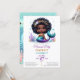 © Socialite Designs & LICENCORS. Celebra el día especial de tu niñita con una mágica invitación de cumpleaños de sirena con una sirena dulce afroamericana. Captura el encanto y belleza de una dulce sirena que hará que su día sea aún más memorable.