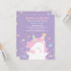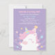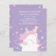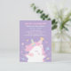 Esta invitación tiene un lindo unicornio blanco con un mane rosa apareciendo desde el fondo de la invitación usando un polka que da fiesta gorra. Las estrellas y el arrebato de sol contribuyen a la vibración de la celebración. Paleta de color rosa y violeta con toques de azul, amarillo y blanco. Personaliza con detalles de la fiesta de cumpleaños para el chica de cumpleaños!