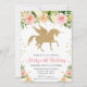 Cuidada acuarela purpurina de oro unicornio y flores tropicales rosadas diseño con estrellas purpurinas de oro
