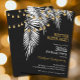 Los frondes de palmeras blancas con hilos dorados sobre un fondo negro, son invitaciones divertidas para fiestas de cumpleaños para cualquier edad, sólo cambiar los detalles. Consulte COINCIDENCIA de elementos en nuestra colección.