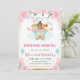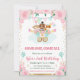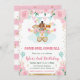 Flores rosa color de agua y diseño de trenes y animales de circo con globos de oso, zorro y mono, amarre, confeti y purpurina dorado bordes de confeti y rayas rosadas fondo