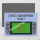 Una divertida invitación de fiesta de cumpleaños de videojuegos de consola de videojuegos genial y de moda para un adolescente o adolescente con un gráfico de controladores de consola de juegos populares de moda con un fondo azul personalizable. El texto puede ser totalmente personalizado para incluir sus propios datos personales.