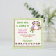Los niños de búho de primavera fiestas invitaciones cuadradas de cumpleaños, con un lindo búho primaveral en morado y marrón oscuro sosteniendo una flor en su pico en una rama con hojas verdes, texto colorido y un borde de patrón de manto verde limón. 1ª, 2ª, 3ª, 4ª. Algunos elementos de Trina Clark.
