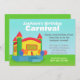 Excitarán a los niños para recibir esta invitación brillante y alegre de la fiesta de cumpleaños del carnaval que tenga una casa/un castillo inflados de la despedida de la diversión con las porciones de globos coloridos que cuelgan en el lado. Esto es también perfecto para las escuelas primarias que están llevando a cabo un carnaval de la escuela. Diseñado por Doodle oxidado.