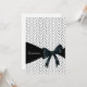 Invitación para fiesta de cumpleaños o evento con lunares en blanco y negro y moño negro. Este diseño de plantilla funciona bien como invitación para una fiesta de cumpleaños, cóctel, fiesta navideña, fiesta de jubilación, fiesta de graduación y cualquier otra ocasión especial. Personalice con su elección de estilo de letra y color de letra, y color de fondo.