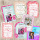 Esta invitación a la fiesta de cumpleaños de los chicas incluye un lujoso marco fotográfico con mariposas. Perfecto para los fiestas rosados polvorientos. El diseño es ideal para tarjetas digitales, archivos digitales para compartir invitaciones de texto. Versátil para las paletas de color rosa y marrón.