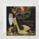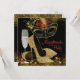 Hermosa invitación a una fiesta de máscara roja, negra y dorada con elegante copa de champán, máscara de plumas y zapatos de tacón alto dorados. Puede personalizar fácilmente esta elegante invitación de máscara negra y dorada para su evento simplemente agregando sus detalles en el estilo de fuente y color, y redacción de su elección.