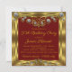 Invitaciones de cumpleaños de diamantes rojos y dorados para mujer con hermosos remolinos de diamantes dorados en un rico fondo rojo y dorado. Esta elegante invitación de cumpleaños roja y dorada se personaliza fácilmente con el texto de su elección, y puede cambiar el color de fondo.
