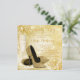 Elegante invitación de cumpleaños en champán dorado y zapatos de tacón alto con purpurina dorada, beige y dorado. Puedes personalizar fácilmente esta hermosa invitación de cumpleaños en marfil y dorado añadiendo tus datos en el estilo de letra y color, redacción y diseño que desees.