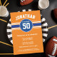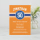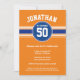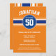 Invitación fiesta de cumpleaños de naranja Blue Sports Jersey