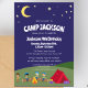 ¡Nuestros niños de la noche de la fiesta de cumpleaños Blue Starry de la Marina acampan perfectamente marca el tono para una inolvidable celebración de cumpleaños! La invitación tiene un hermoso cielo estrellado de azul marino, con una acogedora tienda y una fogata en primer plano. El diseño es perfecto para un fiesta con temática de camping, y seguro hará que su hijo y sus invitados se entusiasmen por una noche bajo las estrellas. La invitación también incluye texto de personalizable, lo que le permite agregar todos los detalles importantes sobre el fiesta. ¡Pida ahora y comienza a planear la aventura de una vida para tu pequeña!