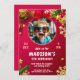 Un alegre diseño vacacional con colores vivos, decoración dorada, copas de nieve y vibrantes vibraciones. Perfecto para celebrar el cumpleaños de un niño con diversión, risas y alegría festiva.