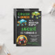 Fiesta de Cumpleaños de Niños de Camiones Monstruo Pizarra - ¡Ponen tus motores en marcha y aplasta hacia una fiesta de camiones monstruo! Todo se intensifica con esta increíble invitación de alta resistencia. Cuenta con camiones monstruo resistentes en un fondo de pizarra. La parte trasera de la tarjeta presenta marcas de neumáticos en el concreto. No hay acrobacias locas, solo el toque justo para establecer el ambiente para una fiesta llena de acción y mantener todo en la pista correcta.