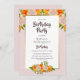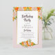 Invitación a una fiesta de cumpleaños floral rosa y naranja.