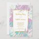 Purpurina morado Verde azulado Floral Gold White Birthday Party Elegant Birthday Party Gold Chica de mujeres. Invitación formal. Usar para cualquier invitación de evento. Personalizar a cambiar la edad y los detalles. Personalizar con sus propios detalles y edad. Plantilla para Dulce 16, 16, Quinceanera 15, 18, 20, 21, 30, 40, 50, 60, 70, 80, 90, 100, Fabulous para Mujeres Adultas, Chicas adolescentes, Zizzago creó este diseño POR FAVOR, NOTE todas las imágenes planas! ¡¡¡NO tienen verdadero Purpurina, joyas de diamantes ni golpes de verdad!!!