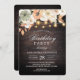 Celebre con estilo con esta elegante invitación de fiesta de cumpleaños rústica que presenta flores suaves de estilo vintage, luces cálidas de cuerda y un fondo de madera oscura. Perfecta para cumpleaños de otoño, fiestas de cumpleaños importantes para adultos o reuniones de jardín acogedor. Este diseño atemporal combina encanto y sofisticación, ideal para mujeres, hombres o fiestas conjuntas.