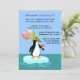 © Socialite Designs. Un pingüino lindo con la invitación de cumpleaños de un niño de globos listo para su personalización. Agregue información adicional a la parte posterior, como direcciones o mapa.