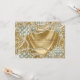 Invitación de cumpleaños de perlas doradas para mujer con elegantes hilos de perlas y remolinos de perlas en un glamuroso fondo de satén dorado. Puede personalizar fácilmente esta hermosa invitación de cumpleaños dorada elegante para su evento simplemente agregando sus datos en el estilo de fuente y la redacción de su elección.