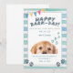 Invitación Fiesta de Cumpleaños de Perrito Acuarela Azul y Bl