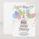 Haga especial su cumpleaños Gray & White Sheepadoodle con nuestro adorable diseño de temática canina con un gorra fiesta y globos coloridos. Personaliza esta divertida invitación de cumpleaños con el nombre y edad de tu perro para una celebración de cola!