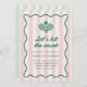 Organiza una fiesta de cumpleaños junto a la cancha de pickleball con esta invitación elegante y vintage inspirada en pickleball. Cuenta con un fondo a rayas rosadas claras, un marco verde curvo y ondulado, y una ilustración de dos raquetas de pickleball y una pelota de pickleball. La parte trasera de la tarjeta cuenta con un fondo a rayas verdes claras contrastantes.