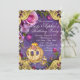 Invitación a la fiesta de cumpleaños de princesa de cuento de hadas con rosas rosadas bonitas en un fondo morado brillante con hermoso carruaje real de princesa. Puede personalizar fácilmente esta hermosa invitación de cumpleaños de princesa rosa y morada para su evento simplemente agregando sus detalles en el estilo de letra y color, y redacción de su elección. Este es un diseño impreso sin joyas reales, cintas, brillo, etc.