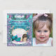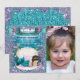 Invitación de cumpleaños de sirena con adorable princesa bebé sirena morena en una bonita concha de perla en un hermoso fondo brillante rosa, púrpura y azul turquesa. Esta linda invitación de cumpleaños de sirena morena se personaliza fácilmente para su evento simplemente agregando sus datos y foto. Este es un diseño impreso sin purpurina real, perlas, etc.
