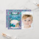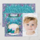 Invitación de cumpleaños de sirena con adorable princesa sirena bebé rubia de pelo claro en una bonita concha de perla en un hermoso fondo brillante rosa, púrpura y azul turquesa. Esta linda invitación de cumpleaños de sirena rubia se personaliza fácilmente para su evento simplemente agregando sus detalles y foto. Este es un diseño impreso sin purpurina real, perlas, etc.