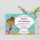 Esta invitación personalizada a la fiesta de cumpleaños de sirena cuenta con una adorable sirena étnica y un pequeño pez nadando en el mar. Puede ser personalizada como una invitación a una sirena, una invitación a una fiesta de billar, una tarjeta de agradecimiento de sirena y más.