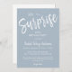 Crea una invitación de fiesta de sorpresa personalizada. Esta invitación de fiesta cuenta con una escritura de caligrafía espaciosa y hermosa con un fondo azul polvoriento. Puedes personalizarla fácilmente con tu propio texto y adaptarla a tu gusto. Tenga en cuenta: "Shhh..." y "Sorpresa" no se pueden editar.