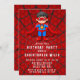 Espero que disfruten esta telaraña roja y negra con un pequeño superhéroe en una capa roja. En esta suite de colección se encuentran los materiales de la fiesta de cumpleaños y de la invitación coincidente.