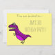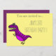 Una encantadora invitación para una fiesta de cumpleaños totalmente personalizable, adecuada para un niño que ama los dinosaurios. Este lindo diseño tiene una imagen de un personalizado de un divertido y gracioso dinosaurio y el color de fondo y el texto es personalizable para adaptarse.